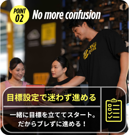 トレーニングメニューや食事アドバイスなど、あなただけのメニューをご用意いたします。